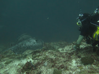 Día 7 --> 17ª en busca del tiburón martillo, pero con la mala visibilidad que teníamos, o nos lo encontrábamos de frente o seria imposible verlo. Cambiamos el martillo por una raya diablo en el azul.